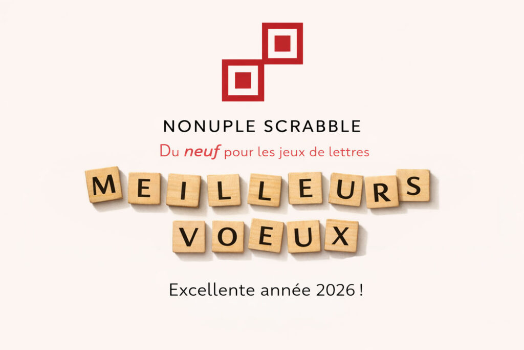 Nonuple Scrabble vous souhaite une excellente année 2026 ! Notre association entre dans sa troisième année avec une quarantaine de membres ! Nous nous retrouvons (presque) tous les jeudis soirs